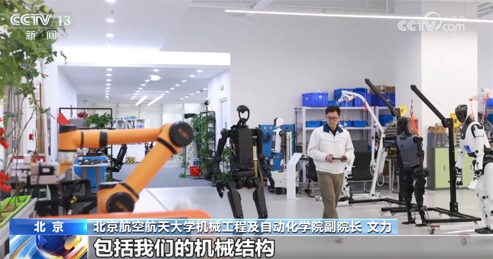 正在航空航天大学具身智能机械人尝试室,记者看到了行走的机械人、搬运沉物的轮式双臂机械人,还有学生自从研发的机械狗——即便被踢倒,也能稳住身体从头坐起。这些新手艺取新场景。